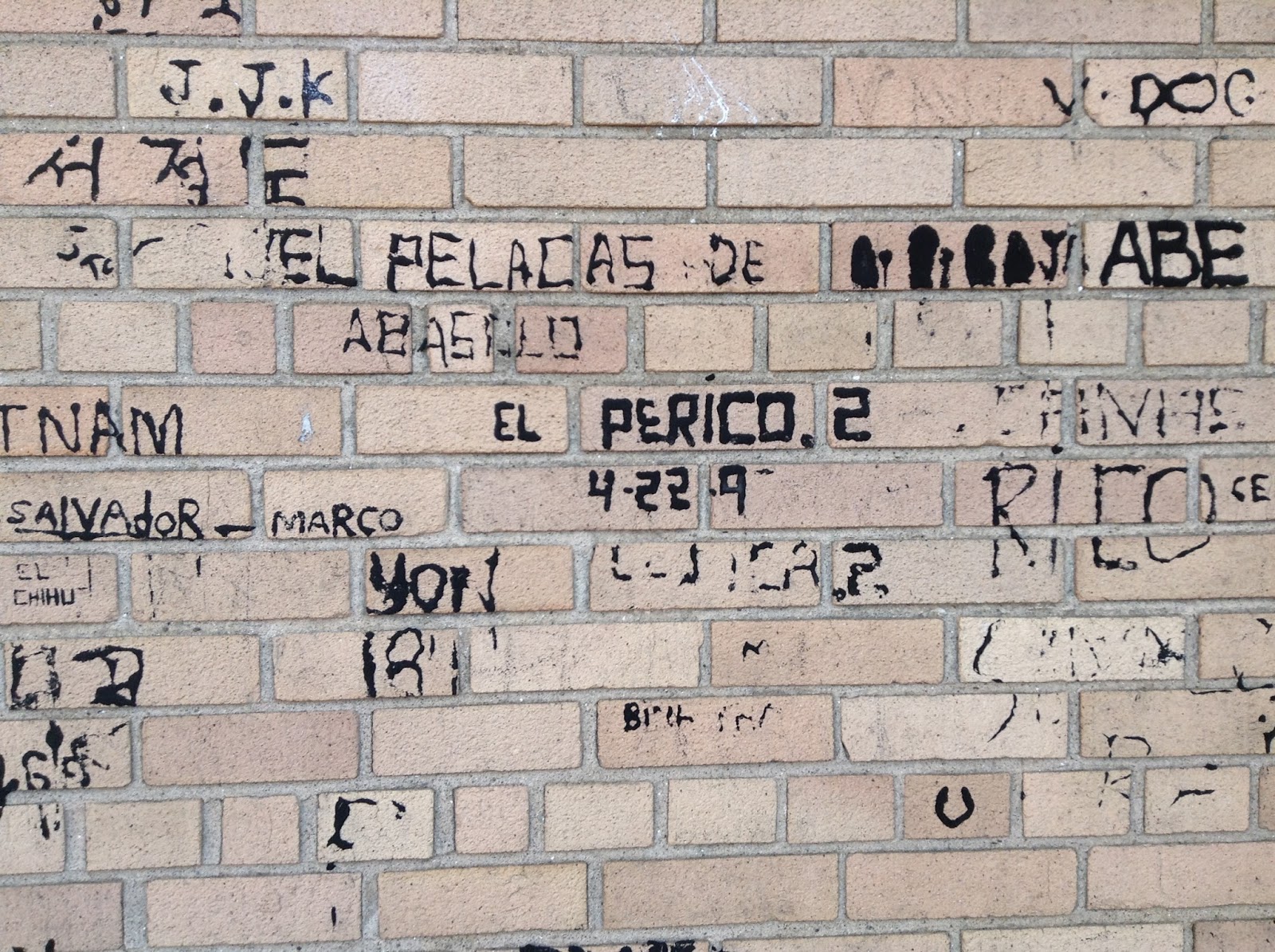 The writing on the wall is that of the detainees who used the tar on the roof to write with and leave their mark on a place I can't imagine being locked up in.